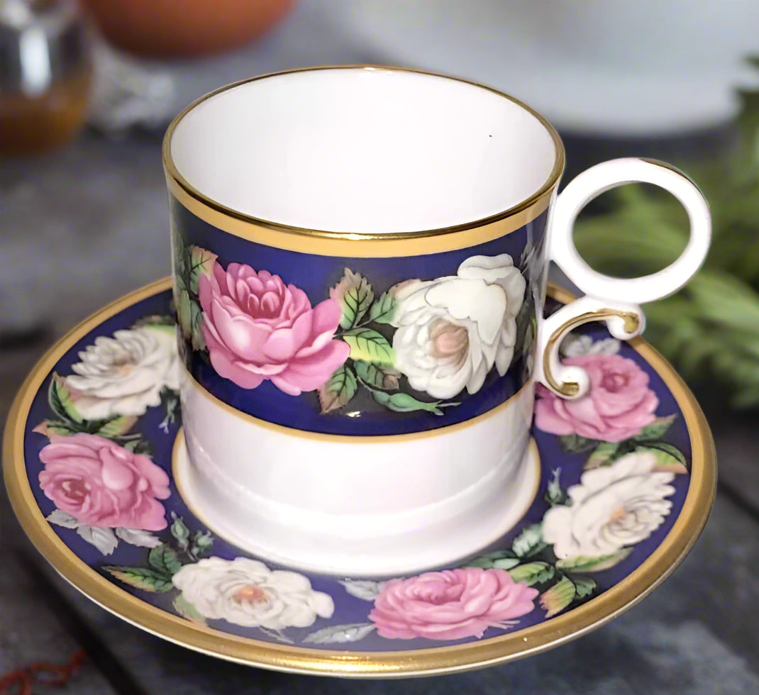 Royal Worcester Chamberlain Roses Blue Coffee Cup and Saucer demi tasse