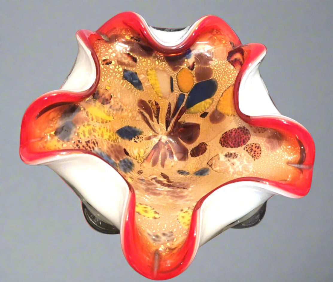 stunning bright Murano Blown red Glass Bowl, Cased Avventurina Tutti Frutti MC