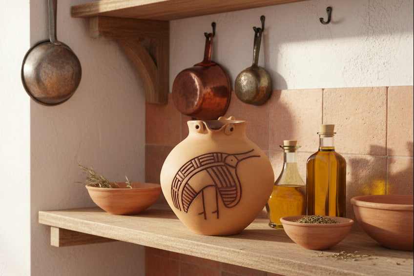 terracotta Studio Pottery Decorative Jug abstract bird Makers Mark 1ltr