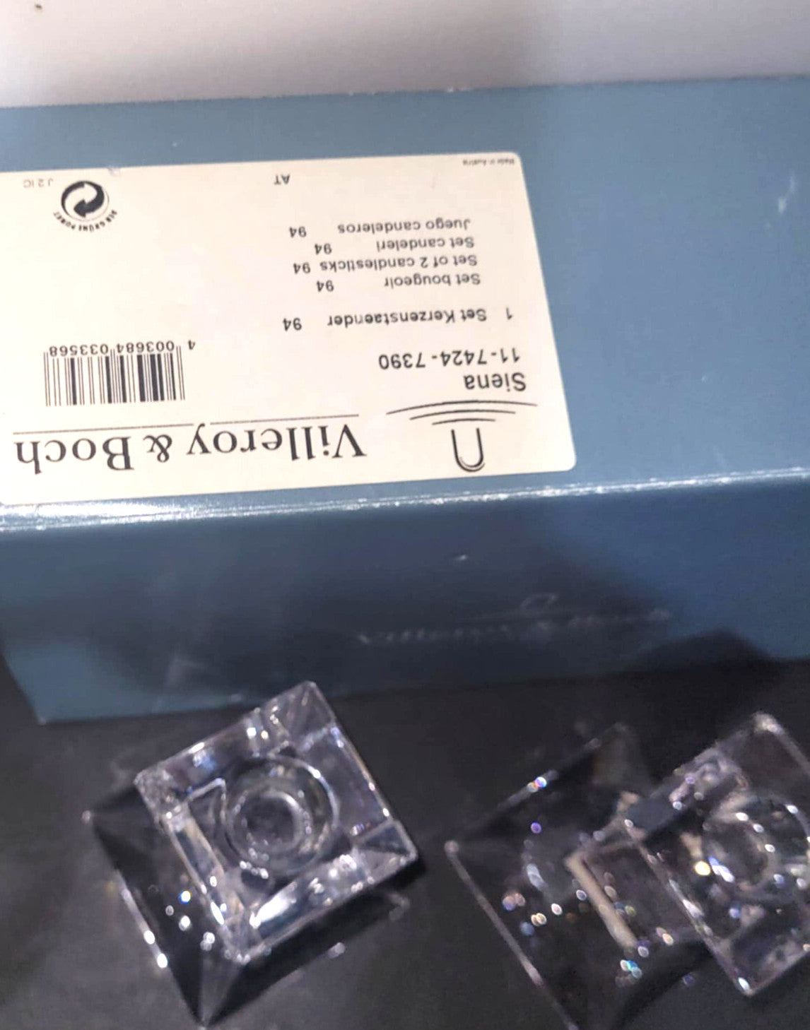 Villeroy and Boch 1748 Siena set of 2 glass candlesticks boxed