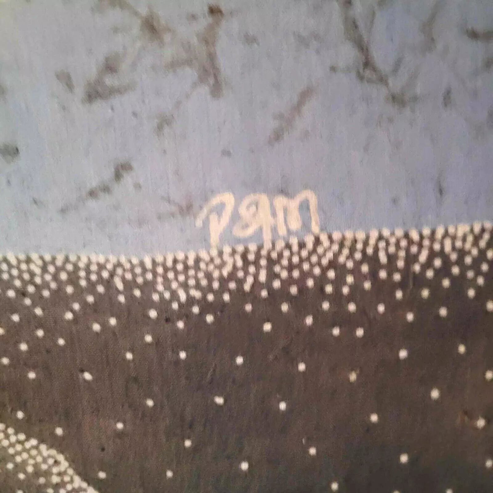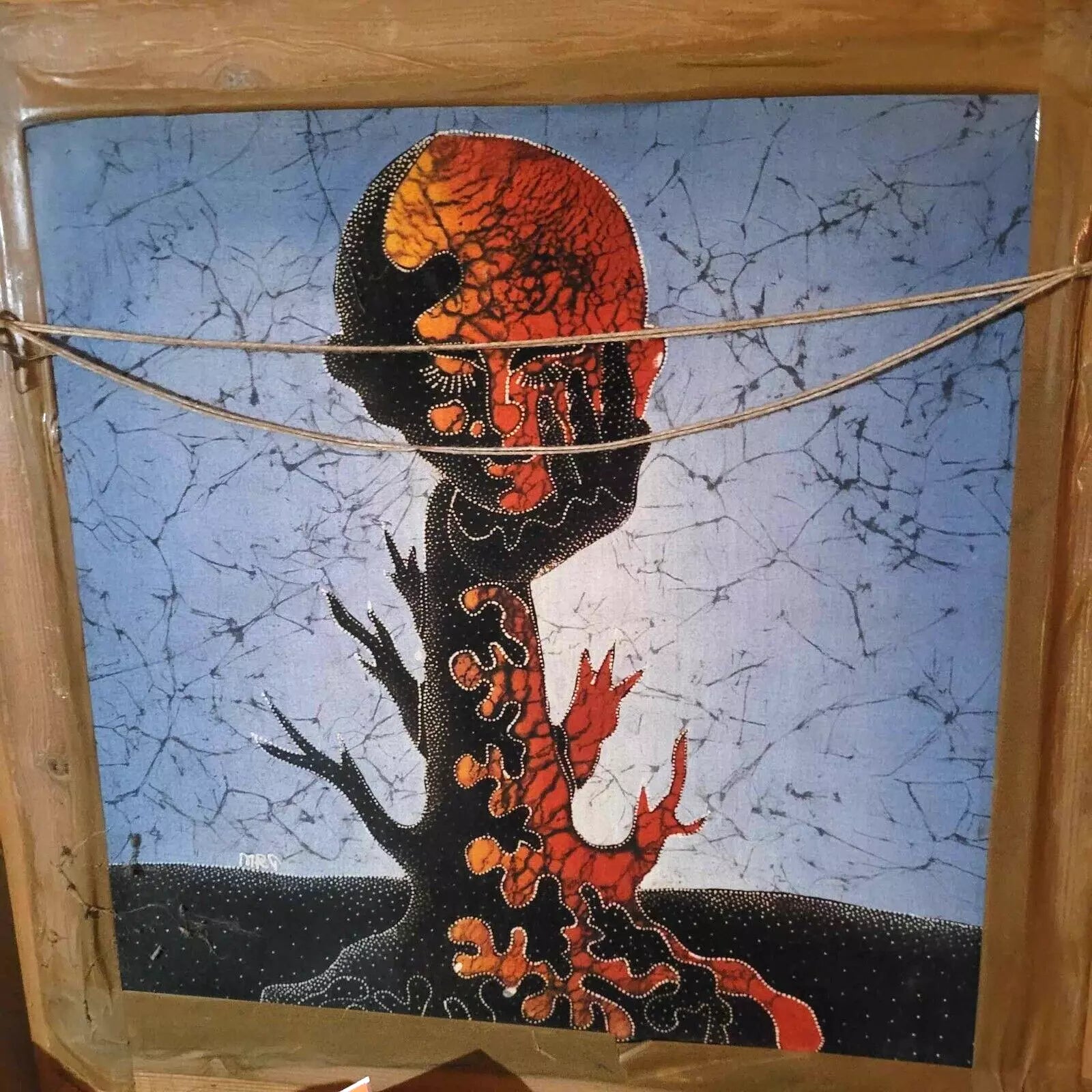 Vintage large Framed Indonesian Batik Fabric Painting Signed tree of life 24"x23"