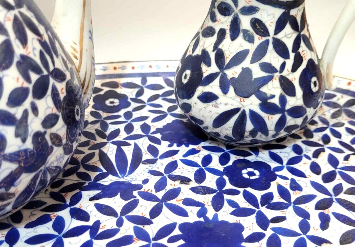 Vintage Russian Hand Painted Porcelain Blue/White Teapot creamer serving tray