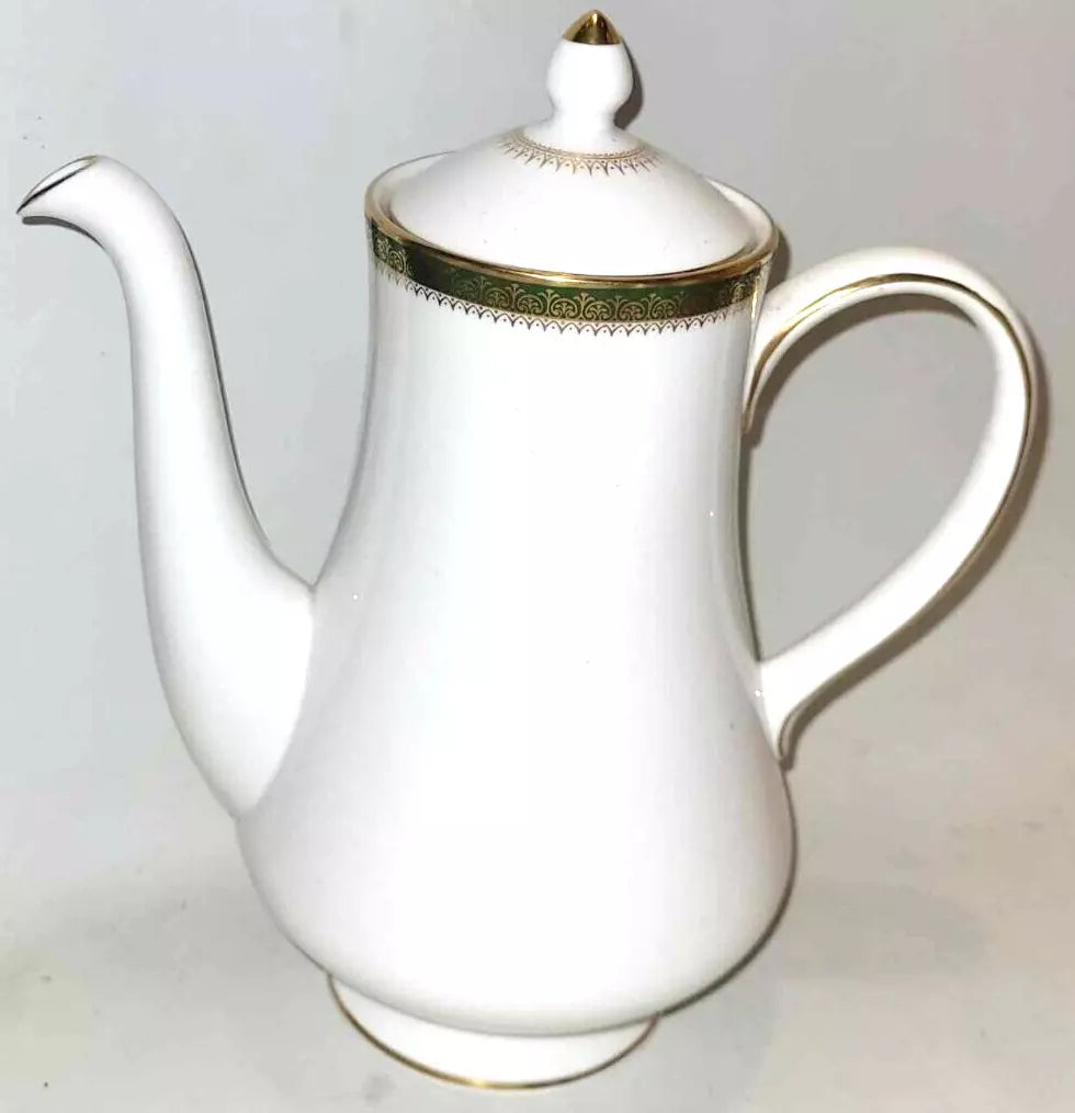 wedgwood chester coffee pot green & gold bone china
